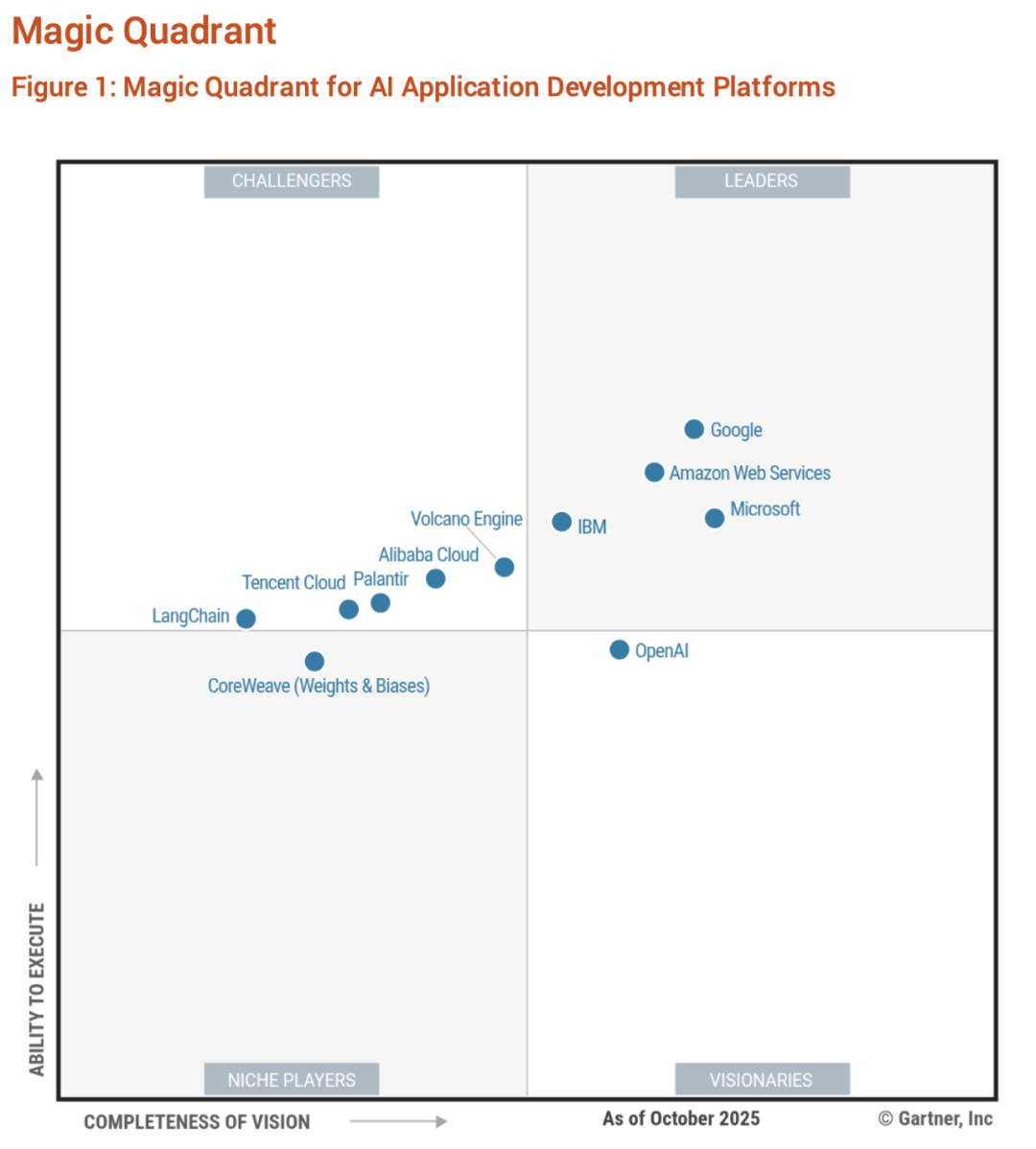 千呼万唤始出来,Gartner 发布了针对 AI 应用开发平台的 2025 年度全球报告,并启用了 「魔力象限」(Magic Quadrant) 这么一个经典的分类统计法。