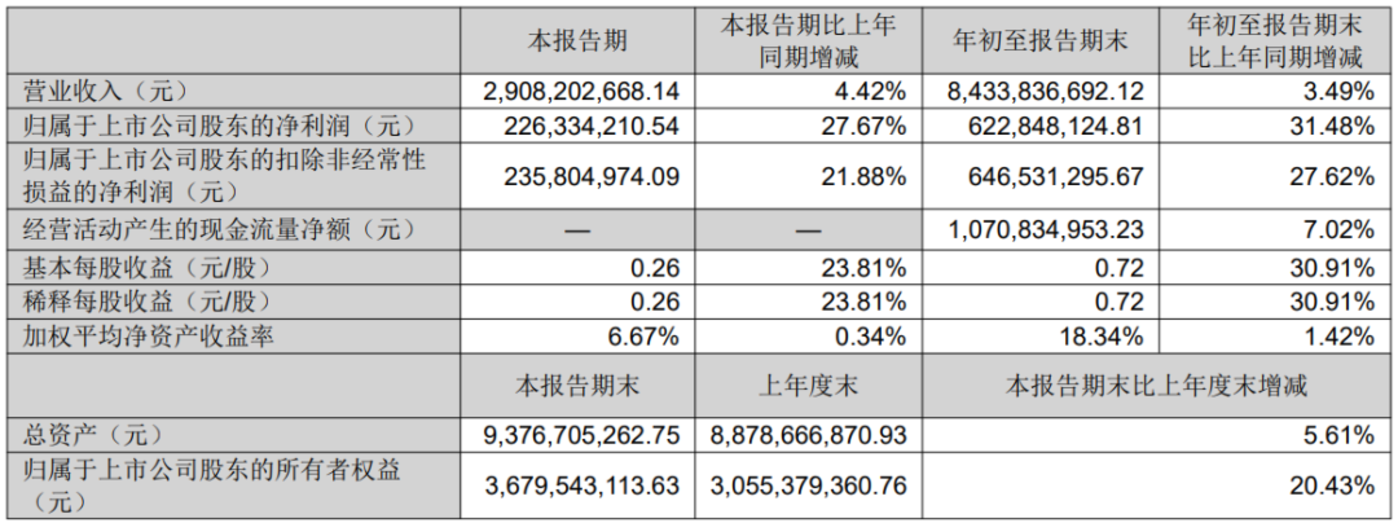 2025 年 1-9 月,新乳业实现营业收入 84.34 亿元,同比增长 3.49%;归母净利润 6.23 亿元,同比增长 31.48%。