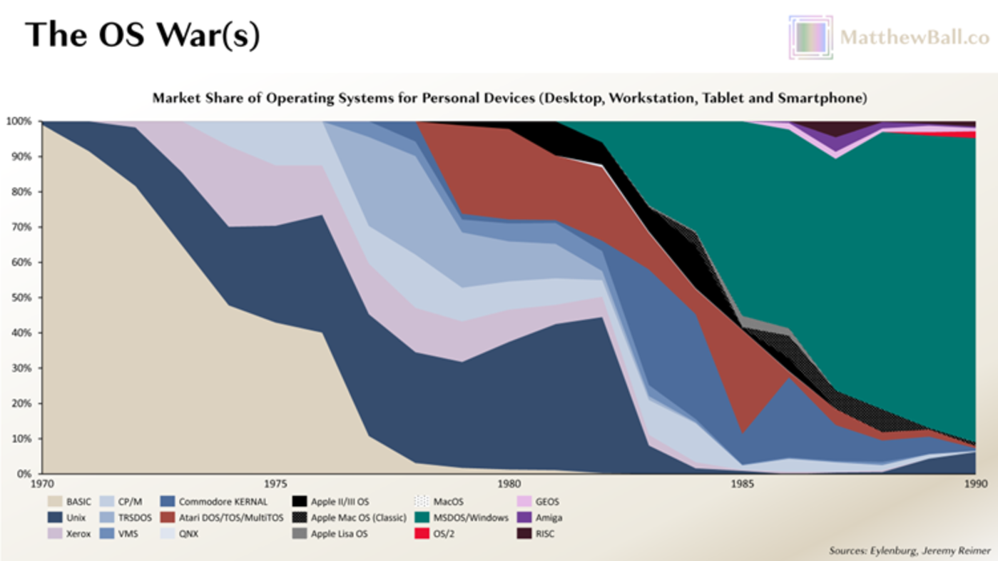 1995 年,比尔·盖茨在 「互联网潮汐备忘录」 中指出:互联网业务不仅是微软的新前线,它还会让竞争对手更强大,甚至完全取代微软的操作系统。(P.S. 移动时代应该重读)