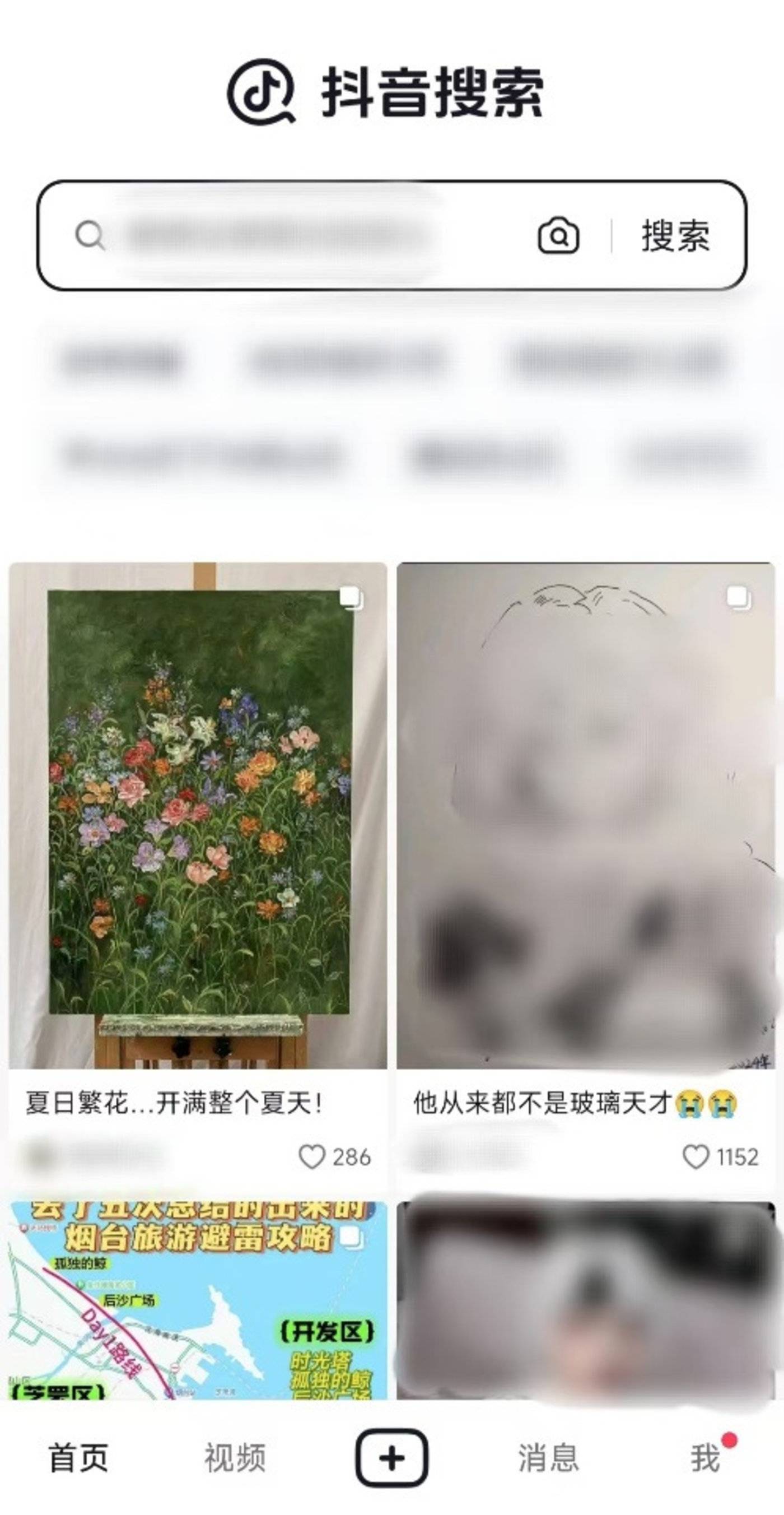 而更难以理解的是,虽然抖音搜索 APP 首页选择将图文内容以双列瀑布流的形式来呈现,但实际上,当 PConline 登录账号后,或许是平时会刻意去减少图文信息,所以这个首页的信息流也变成以视频占据大多数。