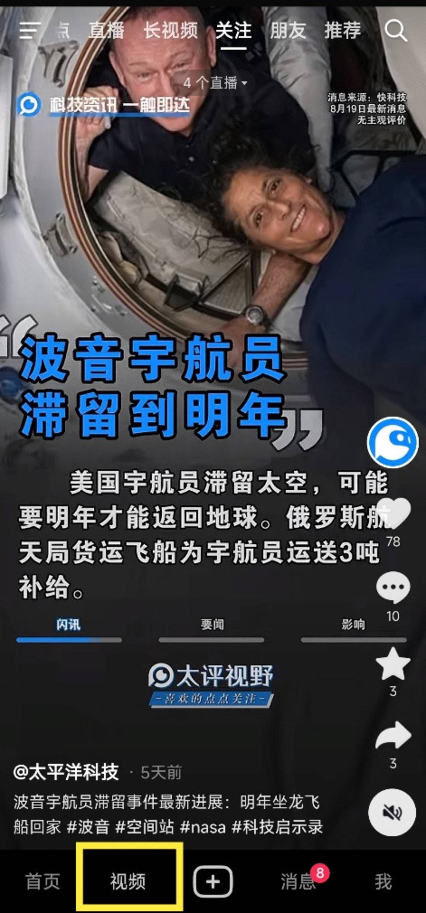 同在视频界面,除了 APP 的顶部菜单栏和底部导航栏略有不同,乍一看,你压根分不清自己打开的是抖音还是抖音搜索。