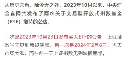2025 年 4 月 7 日,市场大幅下跌,又有人在担心。我在 4 月 7 日的文章 《中央汇金出手了!前两次公告买入 ETF,大盘均见到波段底部》 中明确指出,中央汇金公司 2023 年 10 月-2024 年 2 月两次发布增持 ETF 公告时,大盘都见到了波段底部。