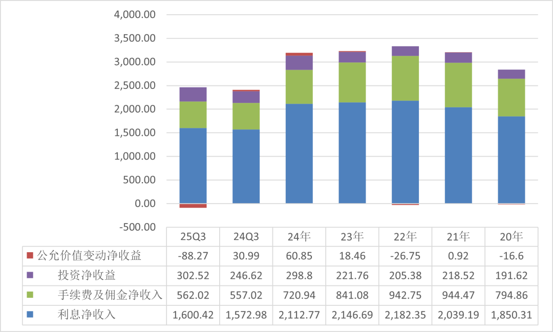 值得注意的是,常熟银行的手续费及佣金净收入自 2024 年以来,一改此前大幅下降的趋势,较上年增长 158.54%,2025 年前三季度同比增长 364.75%。从明细来看,增长主要由代理业务驱动。