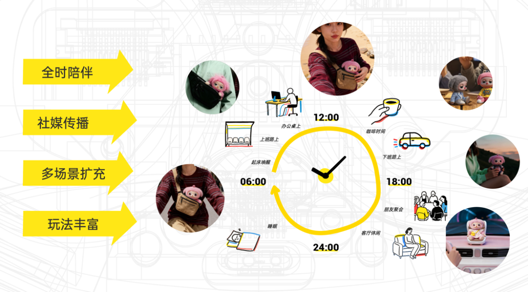 淘公仔这个由一个旺旺表情包发展而来的橙色小人,也是国内最早开始设计师合作开发、联名、限量等玩法的 IP 形象。而这段经历,也让马丁深刻认识到:功能性消费向情绪性消费的转变,将是一个巨大的机会。而智能座舱娱乐互动系统的搭建经验,也让马丁对于智能情绪陪伴类消费品产生了一个执念。