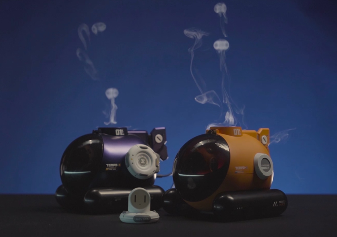 马丁:这个产品的设计原点有一定的偶然性。当时我们看到一个魔术师的烟圈视频,很有趣。就开始探讨如何能吐出一个完美的烟圈,这本身就是一个非常有趣的话题。产品经理的思维也让我们很快开始分析技术实现机制:这是一个在密闭腔体里蓄烟,用快速挤压来缩小空腔体积,使得烟雾通过小口径迅速排出形成涡流。于是我们很快便做出了概念机。