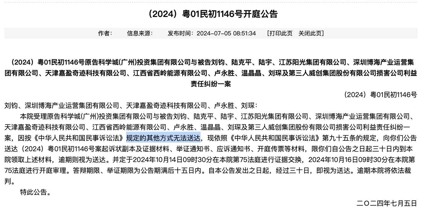 无法坐视昔日巨额投资 「打水漂」 的科学城遂将相关各方一股脑起诉,欲以 「代位求偿」。这起诉讼共计十个被告、一个第三人,今年 5 月,广州市中院正式立案。
