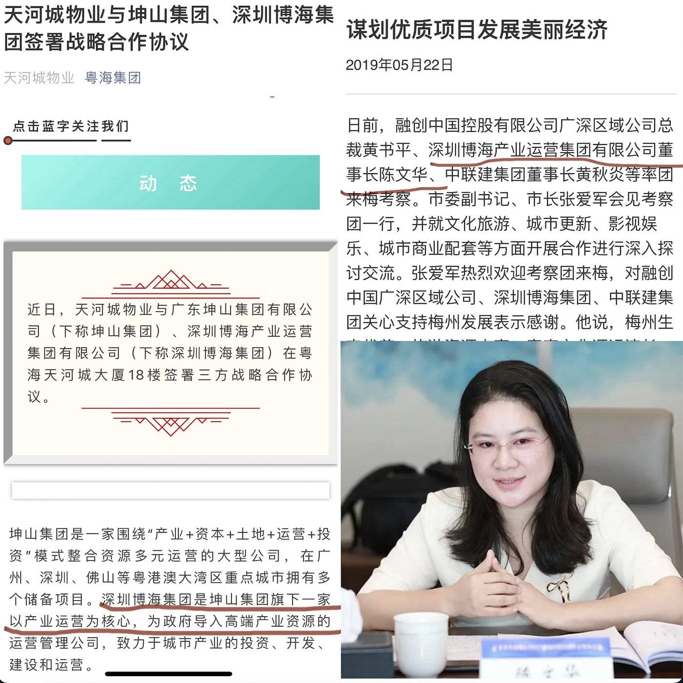 2019 年前后的一些企业合作公开报道中,深圳博海一直被称作 「坤山集体旗下一家产业运营管理公司。」