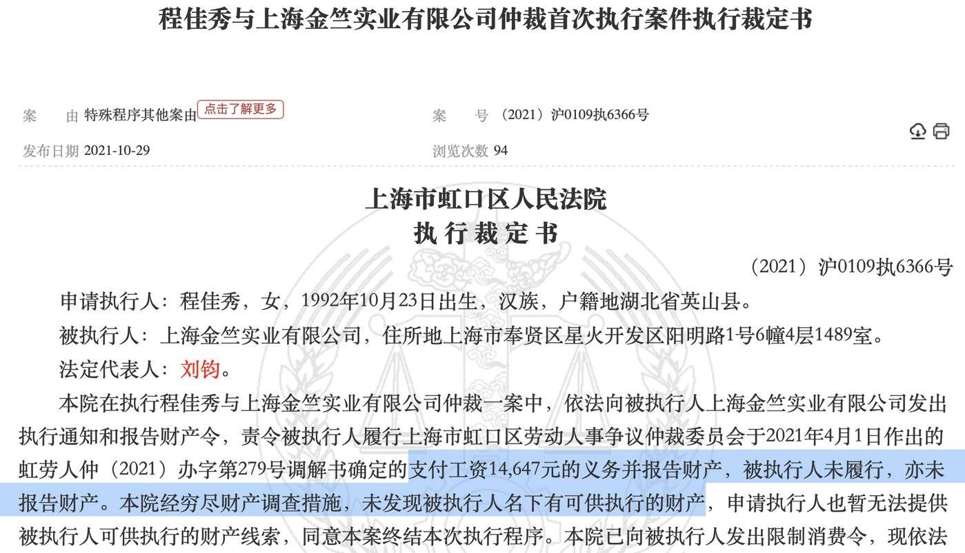 最窘迫时,一起万余元的劳动纠纷执行都无力承担,裁判文书中频频出现 「经穷尽财产调查措施,未发现被执行人名下有可供执行的财产。」