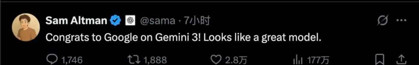 直到最近,谷歌发布了 Gemini 3——让骄傲的马斯克、自信的 OpenAI 创始人奥特曼,都齐齐点赞,「看起来是个很棒的大模型」。