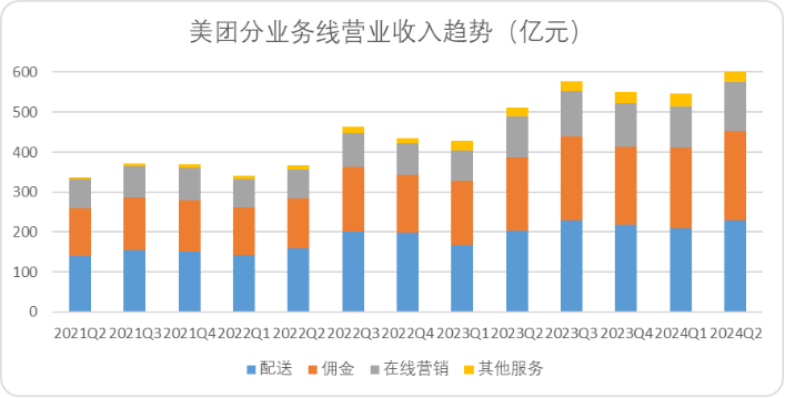 图:美团分业务线营收趋势, 来源:企业财报,锦缎整理