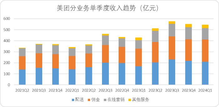 图:美团分业务单季度收入, 来源:企业财报