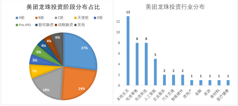 图:美团龙珠投资阶段及行业分布, 来源:新浪财经上市公司研究院
