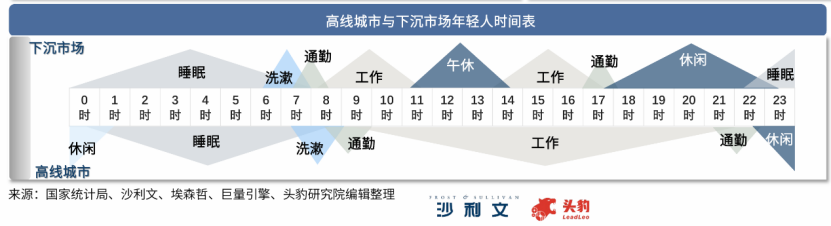 图:高线城市与下沉市场年轻人时间表, 来源:沙利文、头豹研究院