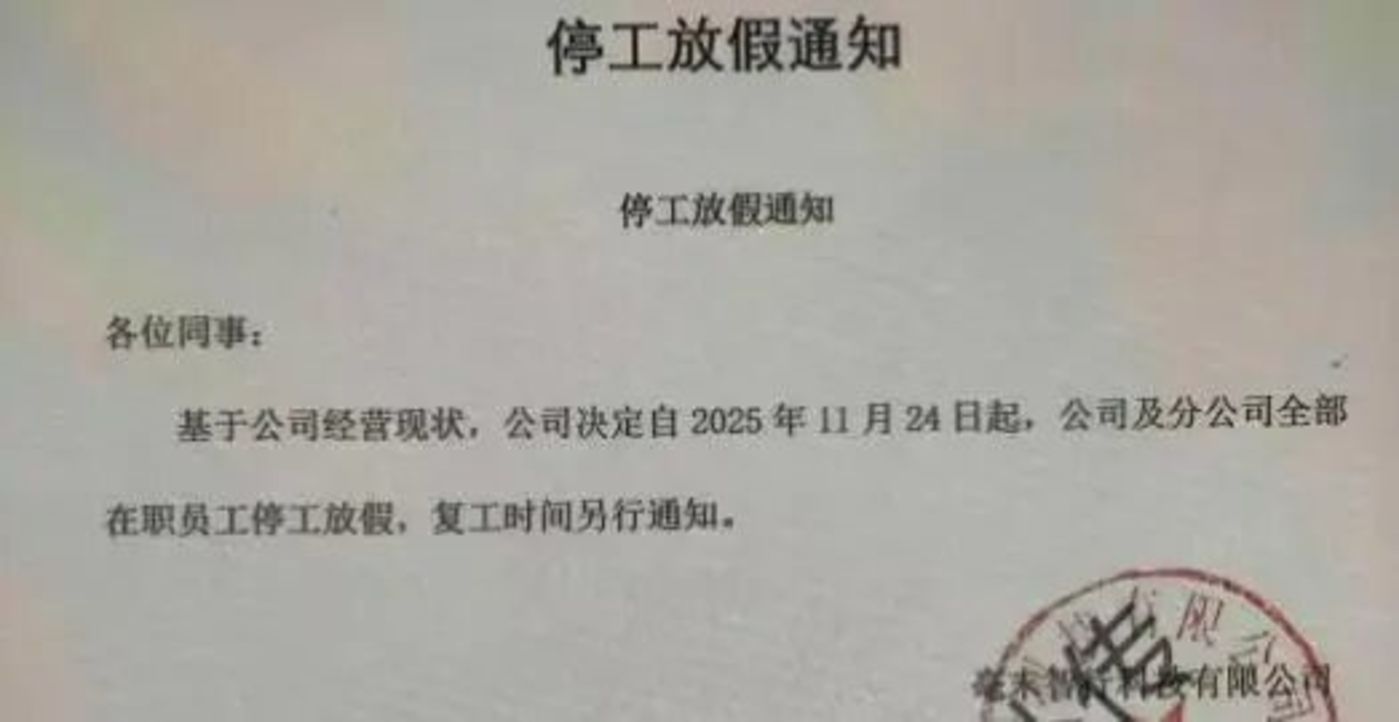 上周五下班前,毫末智行公司大群突然弹出一条通知:「基于公司经营现状,自 11 月 24 日起全员停工放假,复工时间另行通知。」 就这样简单一句话,没有解释,没有后续安排,更没有工资和赔偿方案。