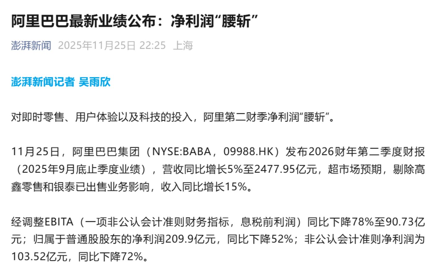 目前竞争仍在继续,终局不好断言。但电商平台为寻求增长进行的多元化投入 (如即时零售、AI),无疑对其现金流构成了巨大考验。这种高强度的资本支出,若无法在短期内转化为可持续的盈利模式,将加速自身利润的消耗,这也将加速行业出清期优胜劣汰。