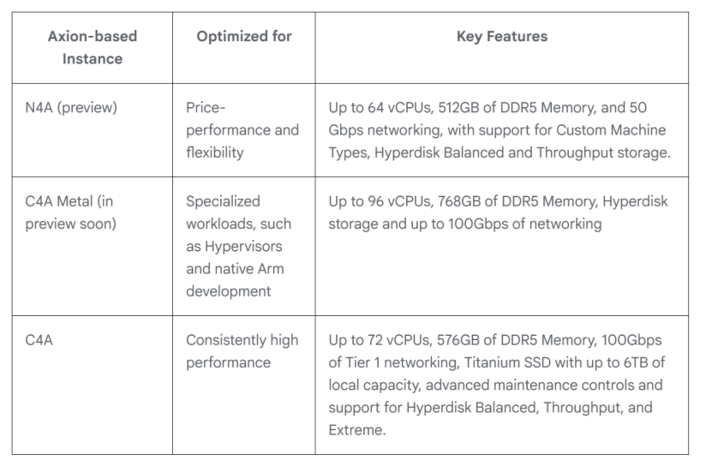 与之搭配的,是Google 推出的基于 ARM 架构的 AxionVM,包含 N4A、C4Ametal 等型号。这套方案可覆盖通用计算、机器学习加速、推理任务及日常后台运算,形成了 「定制芯片+通用 CPU+云服务+网络支持+托管服务」 的完整闭环,对外提供 「AI 超级计算机即服务」 的全新模式。