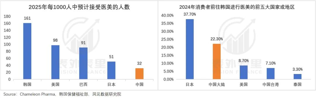 大宝只是当下医美圈激增的“ 敏感肌受害者” 一员,在轻医美广告铺天盖地的攻势下,触圈的人越来越多——2024 年中国大陆赴韩医美人数位列全球第二位;2025 年中国“ 每千人中接受医美的人数”,进入全球前五。