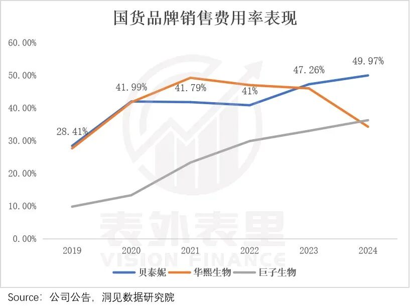 可以看到,贝泰妮、华熙生物、巨子生物的销售费用率,都处在高位。而 2022 年双 11,薇诺娜和珀莱雅在李佳琦直播间砸下 8 个坑位,豪气不亚于国际大牌。