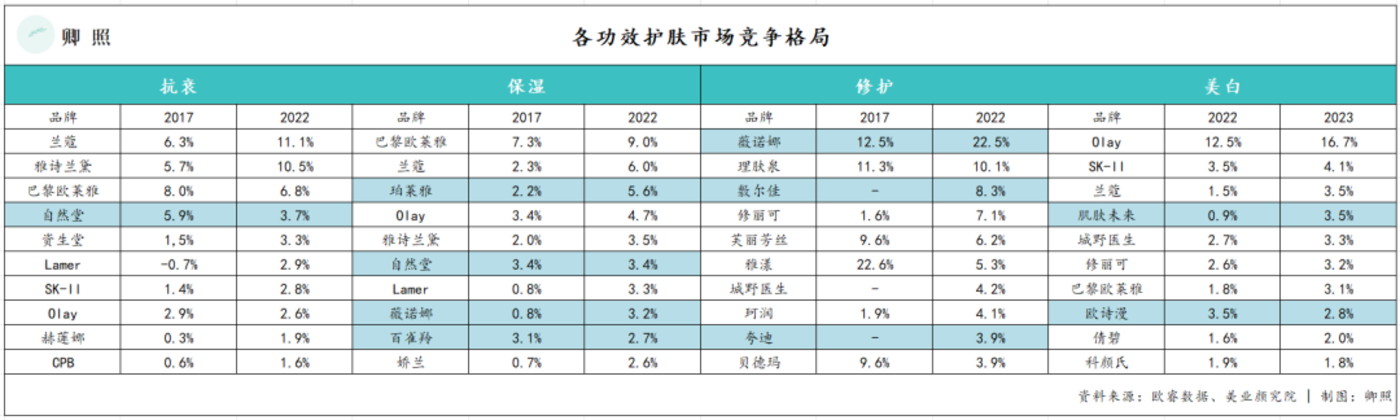 今年上半年,珀莱雅布局更具溢价潜力的美白领域,推出光学瓶 (349 元/50ml),剑指国内美白领域市占率最高的 Olay 小白瓶 (308 元/50ml)。一改红宝石精华 (对标雅诗兰黛线雕精华)、双抗精华 (对标欧莱雅逆时精华) 的平替思路,光学瓶是珀莱雅首个定价高于竞品的产品,表明了珀莱雅走高端路线的决心。2024 年 H1 似乎渐渐获得成效。一方面,2024 年 H1,珀莱雅品牌获得成交额占据天猫美妆排名第一、抖音美妆排名第二的成绩;另一方面,据品观数据,由于平均售价较高的面霜、精华类产品销售占比提升,2024 年第二季度,珀莱雅护肤类产品平均售价增长了 37.89%。