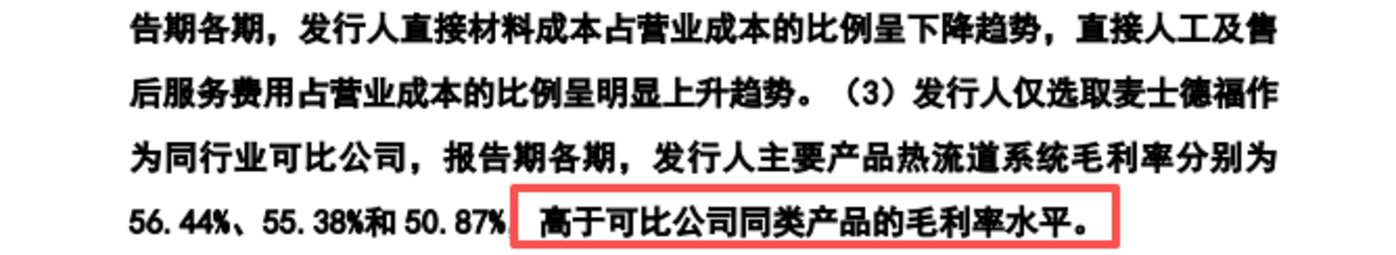 需要指出的是,即便毛利率持续下滑,根据北交所问询函内容,恒道科技热流道系统的毛利率仍高于可比公司同类产品的毛利率。