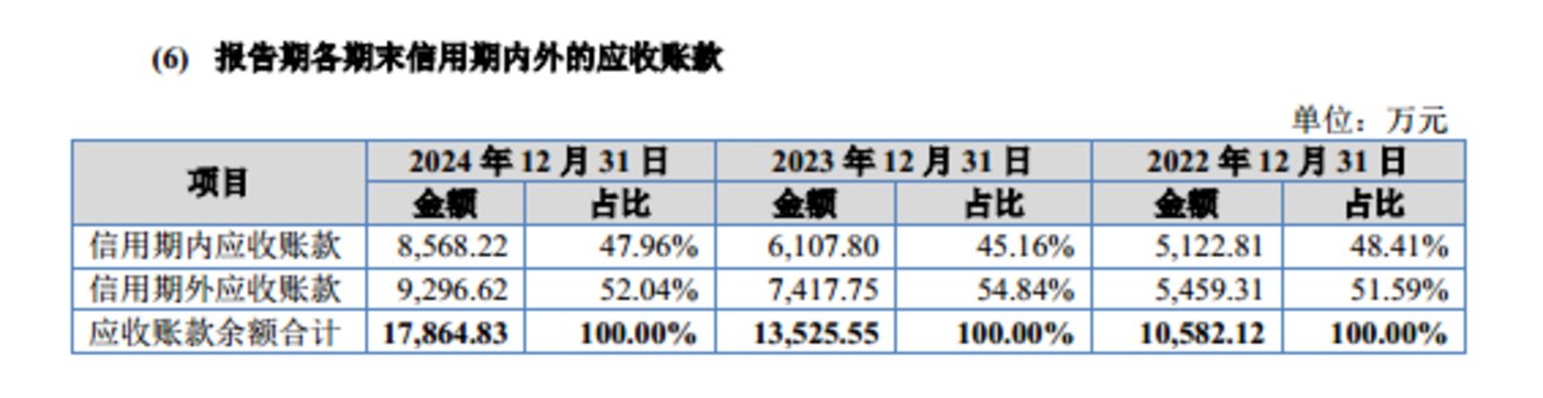 应收账款方面,恒道科技报告期内,公司信用期外应收账款占比始终维持在 50% 以上,逾期问题长期突出。更值得警惕的是,在逾期账款高企的背景下,公司信用政策较同行更为宽松。在此情形下,公司为何维持宽松信用政策、该政策的合理性及可能引发的经营风险,也已遭到北交所重点问询。