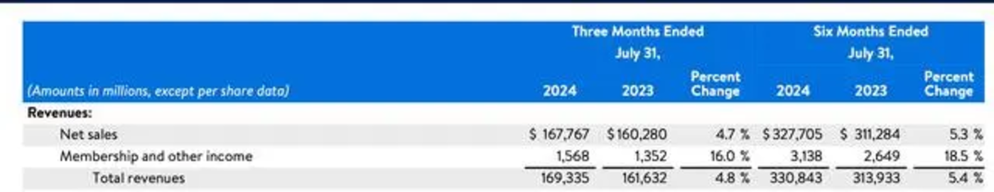 沃尔玛中国 2025 财年 Q2(截至 7 月 31 日的三个月) 财报数据显示,其净销售额为 46 亿美元,同比增长 17.7%,可比销售额增长 13.8%,电商业务净销售额增长 23%。二季度山姆业态及电商业务表现持续强劲。从沃尔玛全球的营收业绩来看,与山姆有关的数据也相对增速较高。数据显示,2025 财年 Q2,会员费和其他收入同比增长 16.0%,这一数据显然与收取会员费的山姆会员店有关。