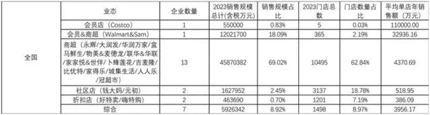 尽管整体市场呈现回暖趋势,2024 年上半年仍有包括行业巨头在内的至少 131 家商超门店关闭。在此背景下,连锁商超行业展现出了一种 「冰火两重天」 的鲜明对比。2023 年,中国国内超市 TOP100 在销售规模和门店数量上均有所下降,尤其是传统大卖场受到的冲击更为明显,多家知名企业如永辉、大润发、华润万家等均出现了不同程度的下滑。