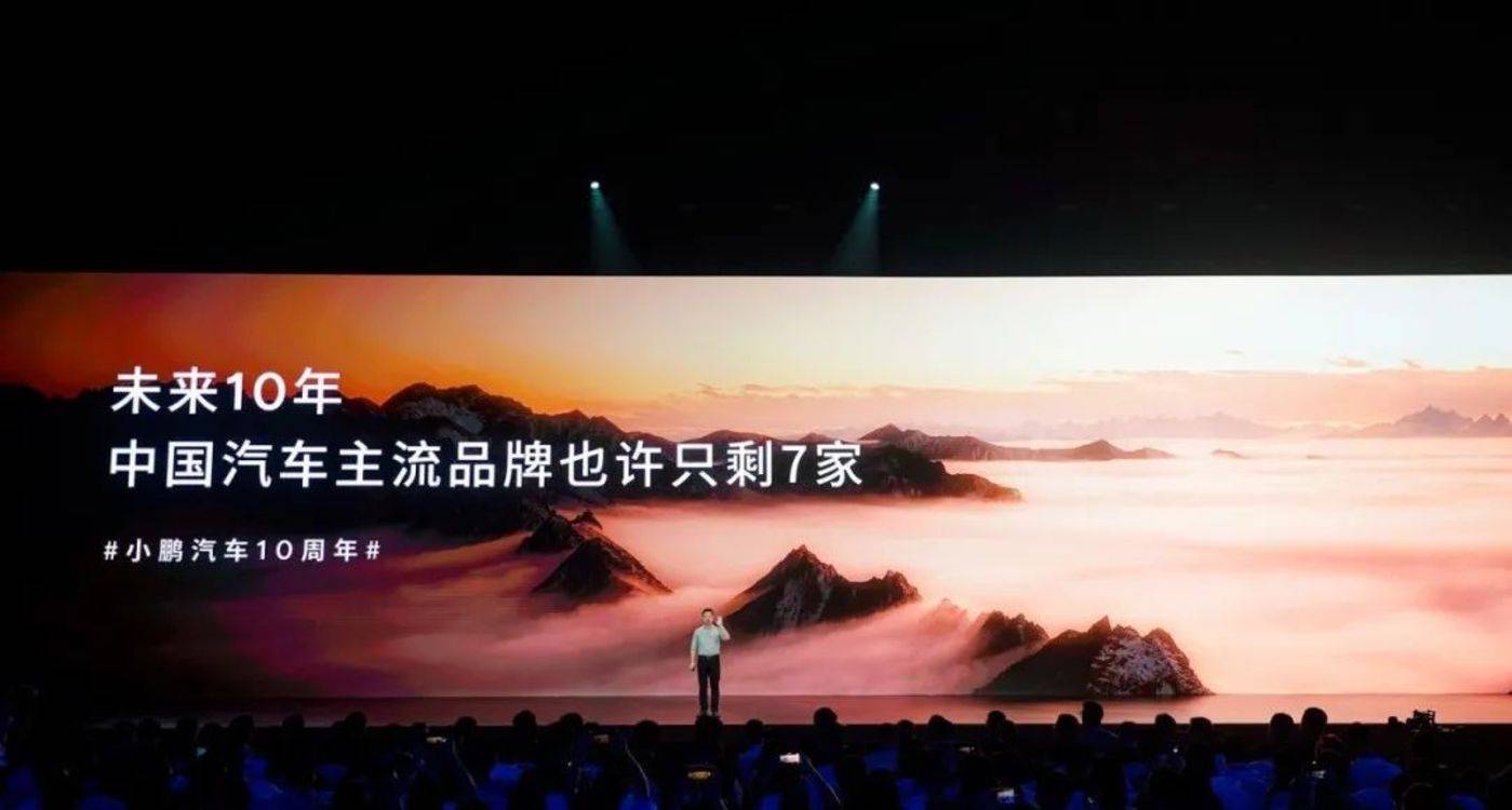 此外,何小鹏对未来的预判依旧 「惨烈」,他表示:未来十年,主流汽车品牌预计不会超过 7 家。而年销 100 万辆 AI 汽车是跻身决赛的入场券。