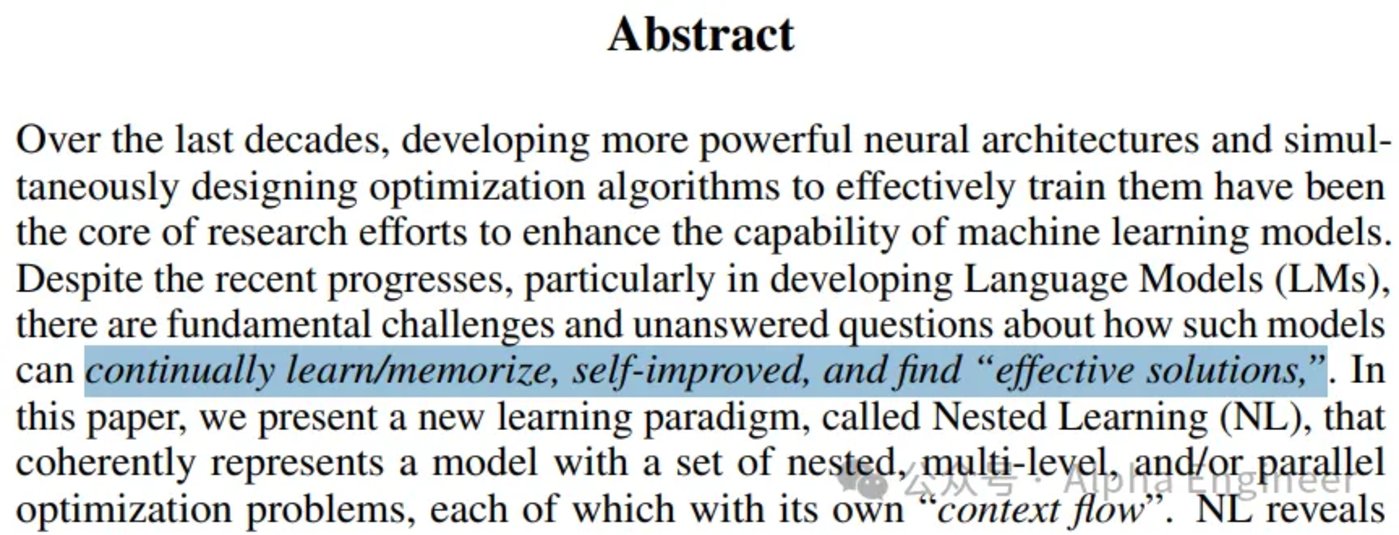 Google 在 11 月 7 日发表了一篇题为 「Nested Learning」 的研究成果,向大模型的 「可持续学习」 难题发起了挑战。