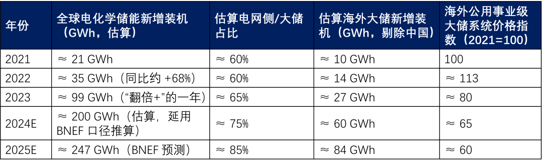 2021–2025 年全球& 海外大储市场规模与价格趋势 (估算)
