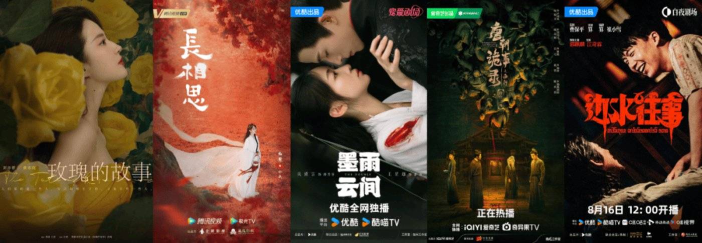 首先,古偶依旧是各平台重点布局的热门题材,如腾讯视频的 《长相思 2》《柳舟记》、优酷的 《墨雨云间》《度华年》、爱奇艺的 《颜心记》《四海重明》 等。然而一个不争的事实是,古偶的观众基本盘正在继续流失。