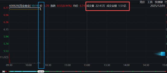 复盘 12 月 1 日茂业商业交易,继前四日连续涨停后,茂业商业当日开盘即达成五连板,然而 10 点 19 分,涨停板上出现一笔资金砸盘 22.43 万手,茂业商业迅速炸板,连续走低,收盘下跌 3.41%。