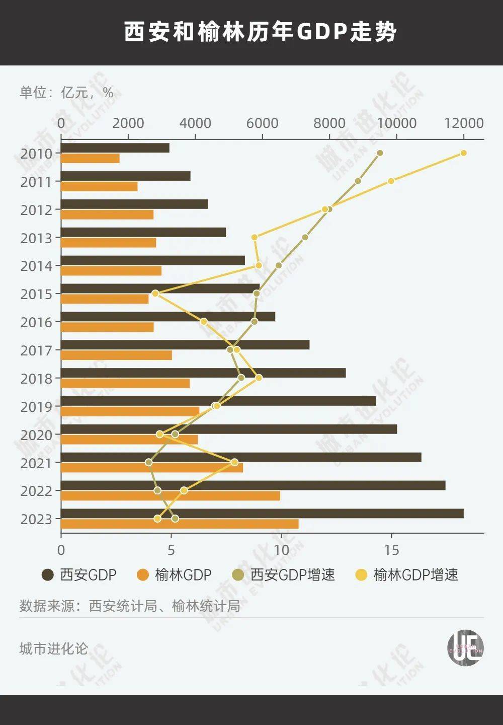 与榆林经济产业结构类似的,是内蒙古的鄂尔多斯,两座城市地理位置靠近,经常被放在一起比较。