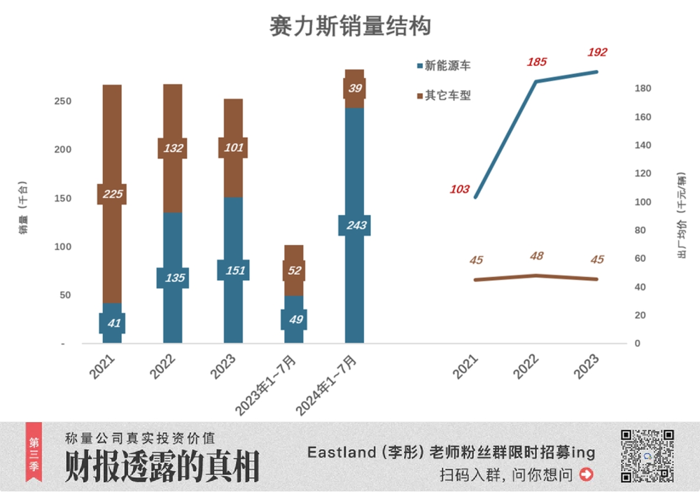 2023 年,新能源车销量 15.1 万辆,出厂均价 19.2 万元;