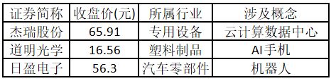 另外,连板数前 5 的涨停股中,有 2 只属于 AI 手机概念股,其中道明光学更是 5 连板股价创出历史新高。