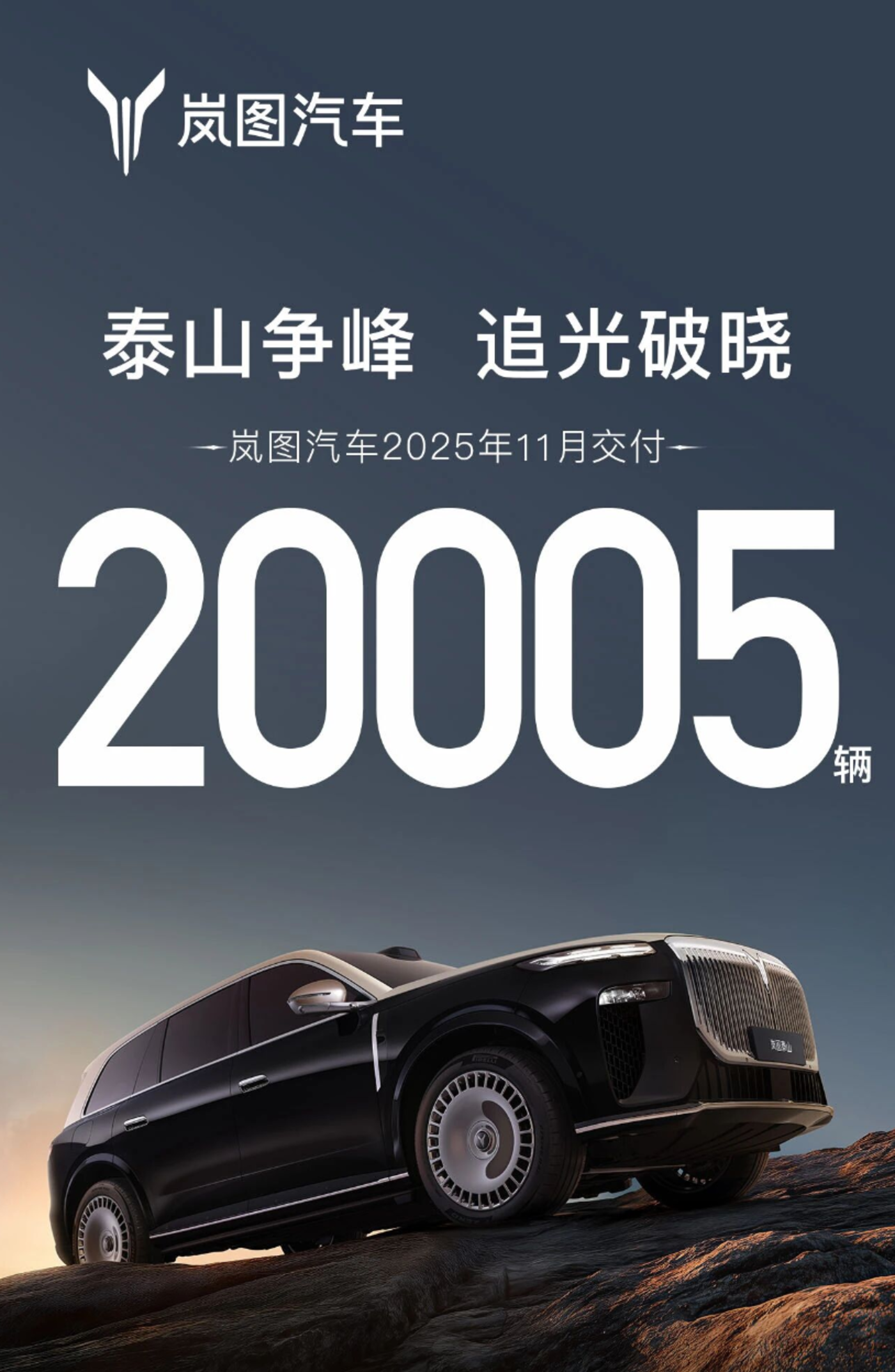 岚图汽车在 11 月交付新车 20005 辆,同比增长 84%,这是该品牌单月交付量首次突破 2 万辆大关,证明在电动化时代,传统车企的高端品牌只要产品到位,仍有巨大机会。