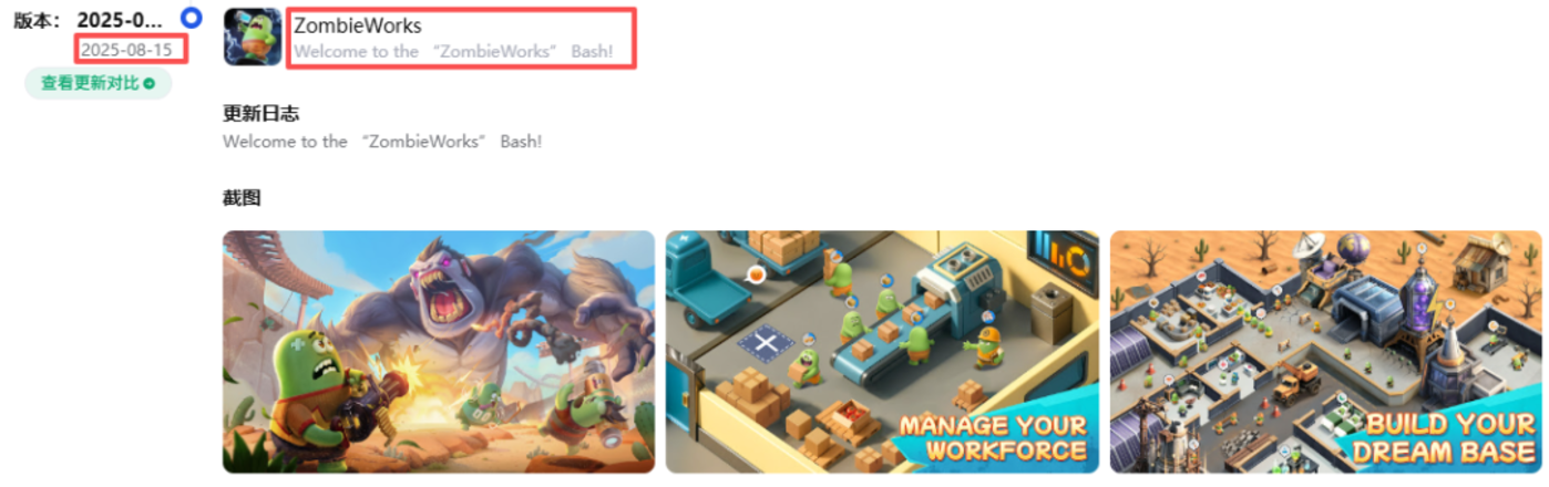 点点数据显示,今年 8 月中旬,字节旗下的账号 「Pylon Games」(开篇提到的游戏平台 GameTop 也在该账号下发布) 在多个国家及地区的 Google Play 发布了一款名为 《ZombieWorks》 的僵尸题材休闲化 SLG 新游。