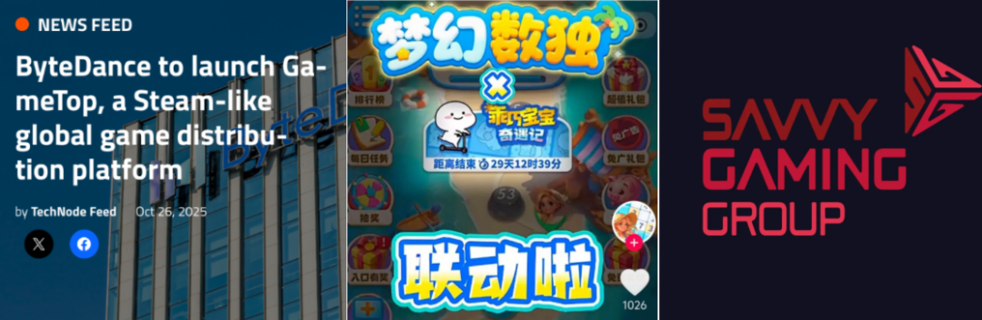 先是今年 10 月底,外媒 technode 报道称,字节计划在海外推出一个全新的游戏发行平台 「GameTop」。该平台大概率为小游戏平台,类似海外的 taptap 或 hago、weplay,致力于为海外用户提供个性化的游戏内容,同时满足玩家的创作与社交需求;再是 11 月中下旬曝出,抖音端加码广告小游戏布局,近期主推小游戏 《梦幻数独》(今夏上线抖音),体验用户量已经破 550 万,相关话题词超 1300 万次播放;紧接着是上周传出的沙特游戏巨头 Savvy Games Group 正与字节就收购其全资子公司沐瞳科技进行谈判,但双方暂无对此进行回复。