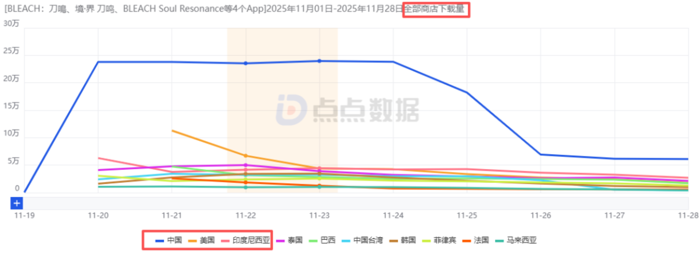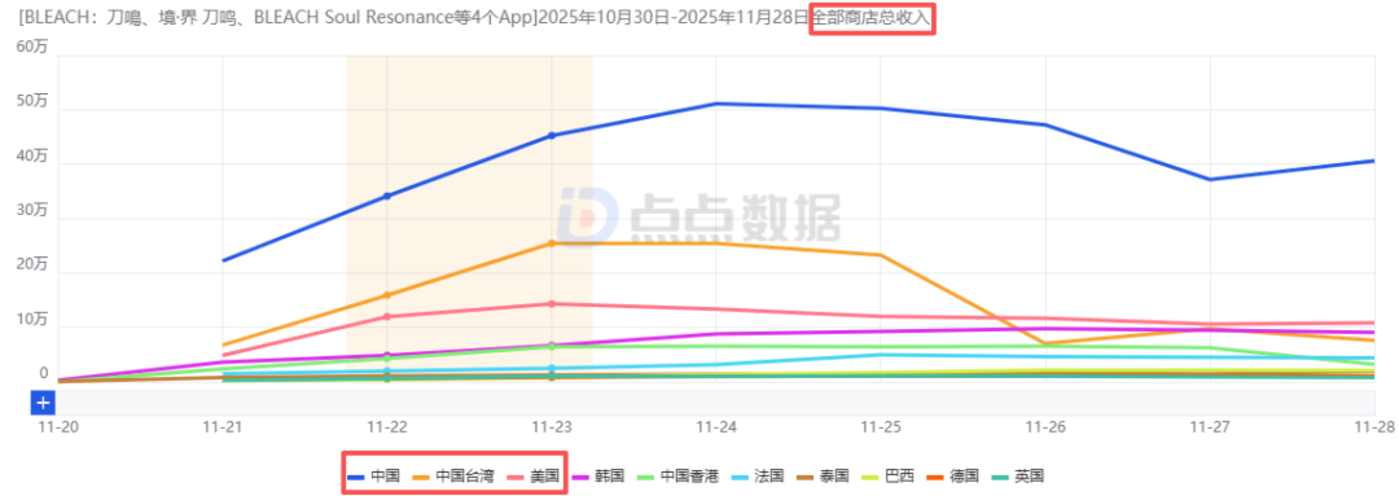 剥离了这些新闻之后,其实在核心的手游端,字节近期需要重点关注的动作也不少,重点新游 《境·界 刀鸣》(《BLEACH Soul Resonance》) 全球范围内上线 8 天吸金超 5340 万元 (不包含国内安卓端,下同),海外开测休闲 SLG 新游 《ZombieWorks》 引发关注。