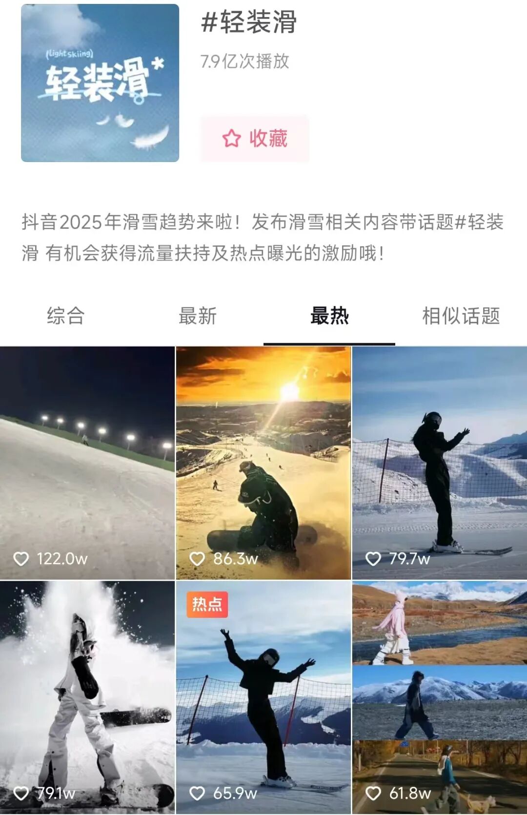 夜场滑雪、雪地电音派对成了 Z 世代的新宠,抖音上“ 轻装滑” 话题播放量接近 8 亿次,年轻人们用滑雪服搭配潮流穿搭,把雪场变成了冬日社交场。