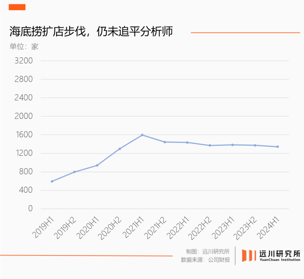 按照各路券商的测算,海底捞在中国大陆的门店上限可以达到 4000~5000 家,即便最悲观的预测,海底捞也能开出 3100 家门店。但此后三年,海底捞在中国大陆只新增了 14 家门店,一共 1343 家,辜负了各位分析师的期待。