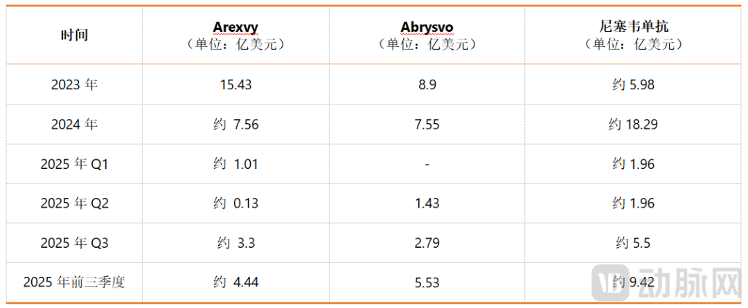 如果对比 Arexvy、Abrysvo 和尼塞韦单抗三者的销售表现,结论会更明显。三款药物上市时间和适应症都十分接近,区别在于适用人群不同。适用于成年人的 Arexvy 和 Abrysvo,尽管在上市之初创造了更大的商业价值,但不确定性也更高,在政策的波动中急转直下,适用于婴幼儿的尼塞韦单抗则表现稳定。2025 年第二季度,叠加婴儿适用人群后,Abrysvo 也显示出强大的增长势能。