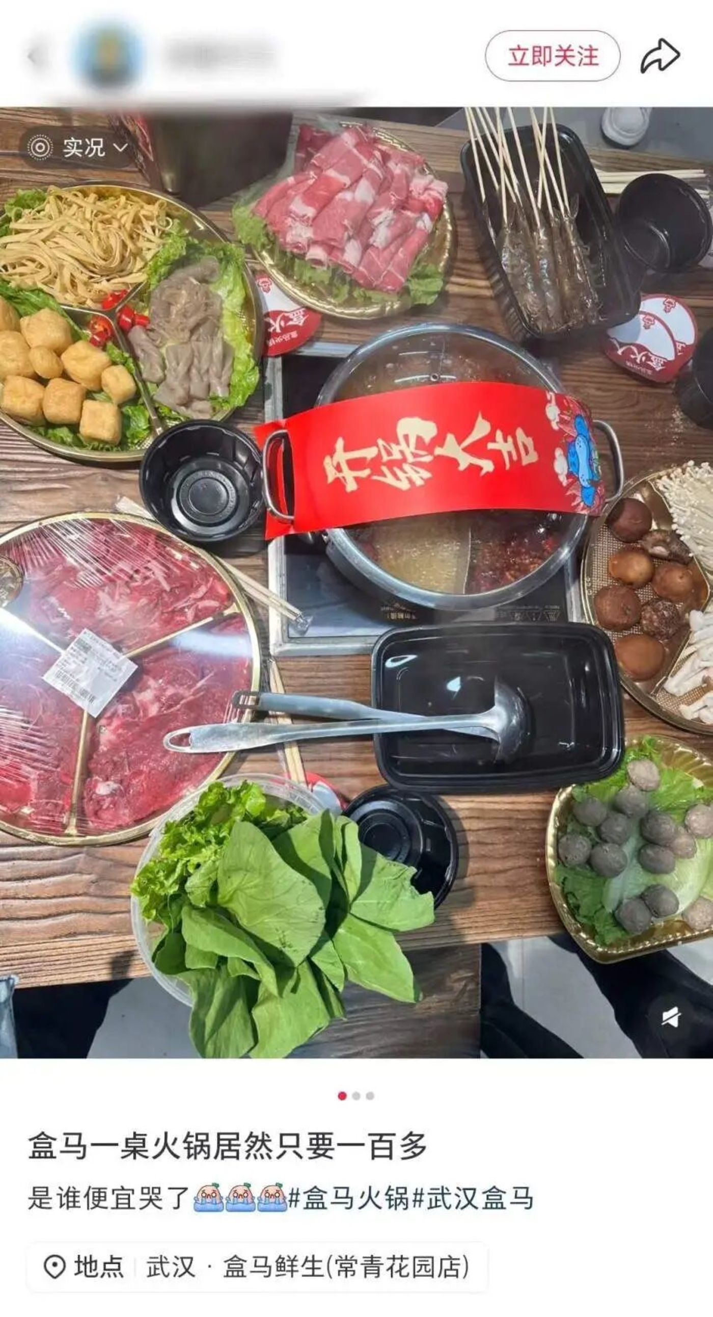 实际上,这与盒马近期启动的 「火锅季」 有关。据红餐网了解,自今年 10 月以外,盒马全国多地门店展开了系列 「火锅季」 活动。比如其邀请了不少网友在盒马免费吃火锅,网友们晒出的打卡照迅速刷屏社交媒体,让 「超市涮火锅」 成为热门话题。