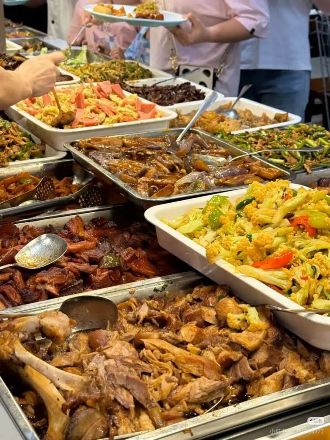 尤其是快餐食堂模式,凭借丰富菜品与实惠价格,同样也成为商超吸引客流的 「流量密码」。据了解,永辉超市早在 2023 年 11 月就试点食堂模式,主打平价现炒,推出 「3 个菜 12 元、4 个菜 15 元」 的盒饭套餐;北京物美超市自去年 7 月推出 13 元、19.9 元两档自助餐,涵盖凉菜、热菜、汤品、水果等品类,支持堂食与打包。据有意思报告,这批超市用餐时段曾一度排得水泄不通。
