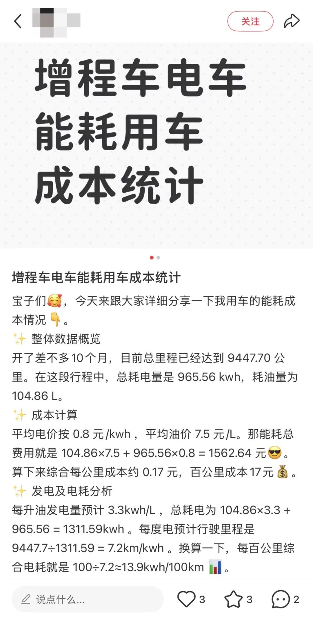 何先生算过一笔账:他的增程车每公里成本约 7 毛,而朋友的纯电才 1-2 毛。他一年跑 2 万公里,光油电开支就比纯电多花 1 万多,三年下来差出 3 万多。