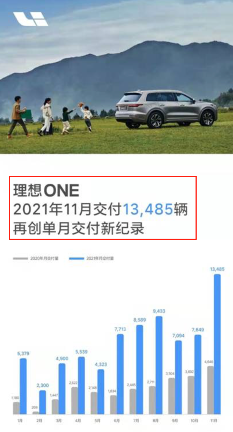 图/2021 年 11 月理想 ONE 交付破万
