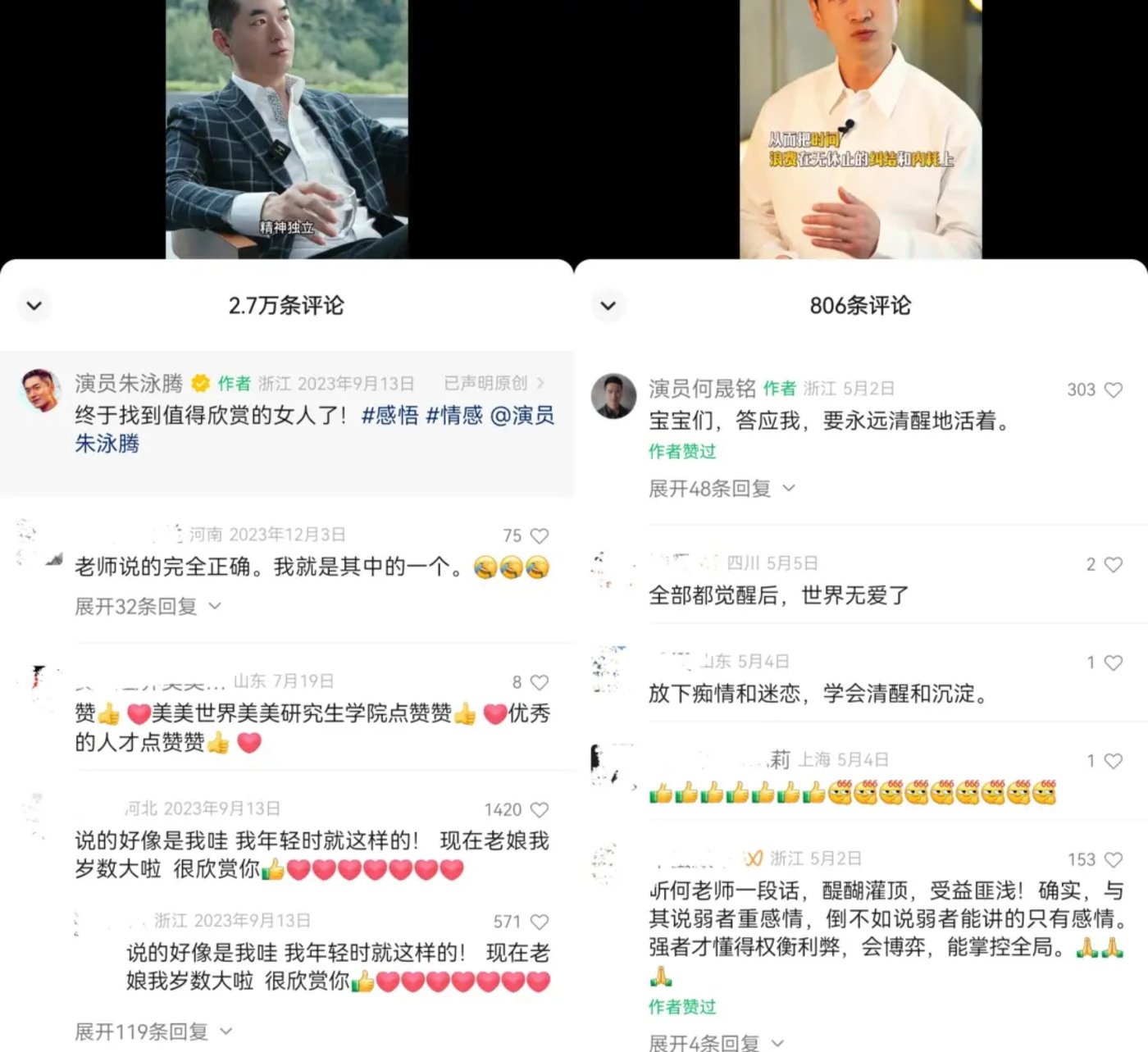 视频中的男性,并不是什么情感大师,不少还会让人觉得眼熟:何晟铭、高梓淇、任重、朱泳腾……