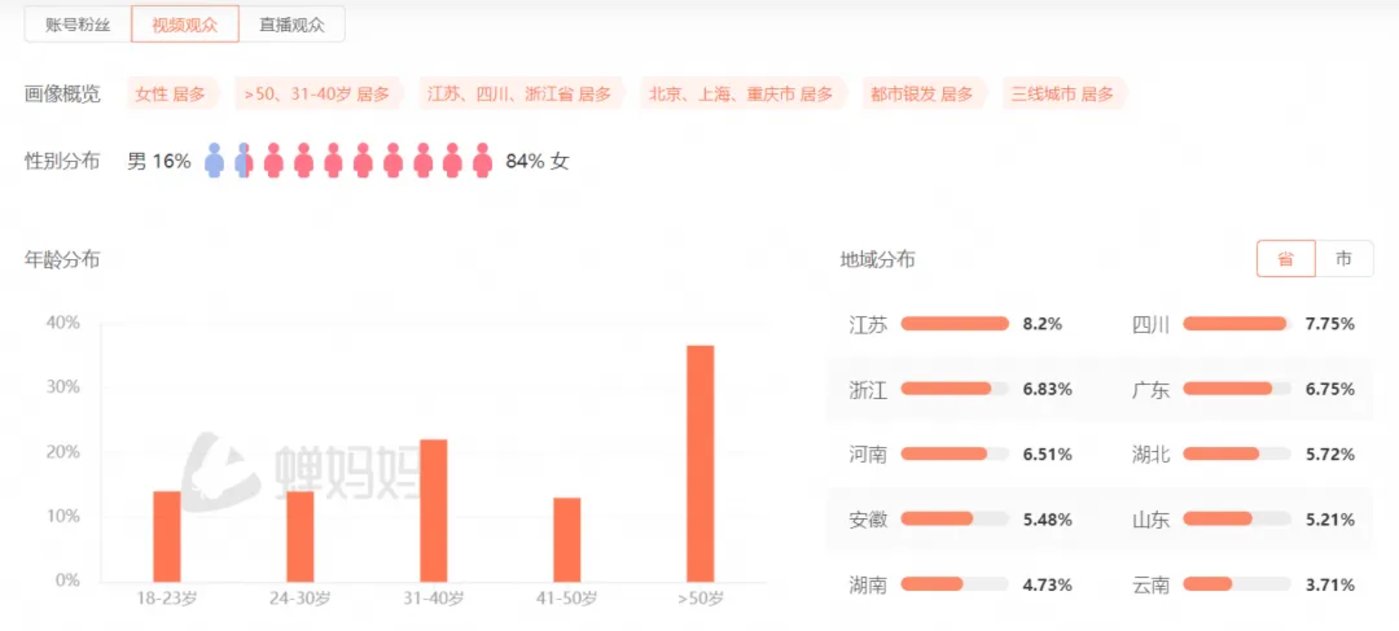 蝉妈妈数据显示,何晟铭的视频观众中,有 83% 为女性,有 42.34% 为 31—40 岁的用户;朱泳腾的视频观众中,有 84% 为女性,36.71% 为 50 岁以上的用户;任重的视频观众中,有 80% 为女性,47.71% 为 31—40 岁的用户。