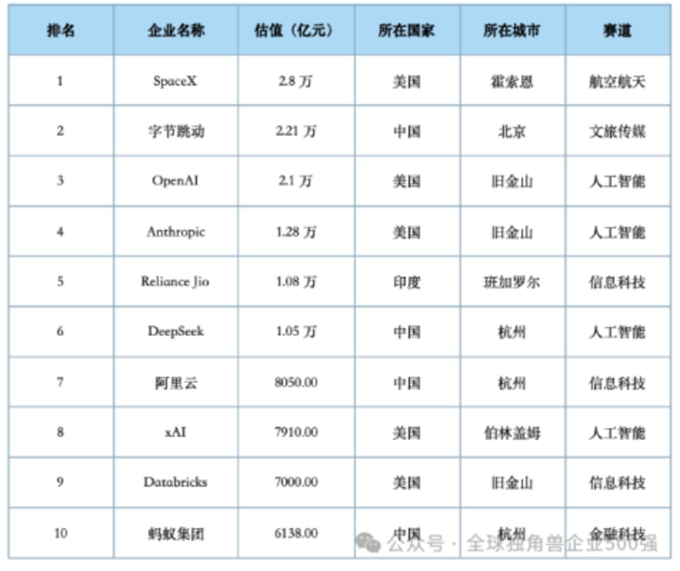 在近日公布的 《2025 全球独角兽企业 500 强报告》 中,DeepSeek 凭借 1.05 万亿元的估值,力压阿里云、蚂蚁集团等一众企业,成为了仅次于字节跳动的中国第二大、全球第六大独角兽企业。