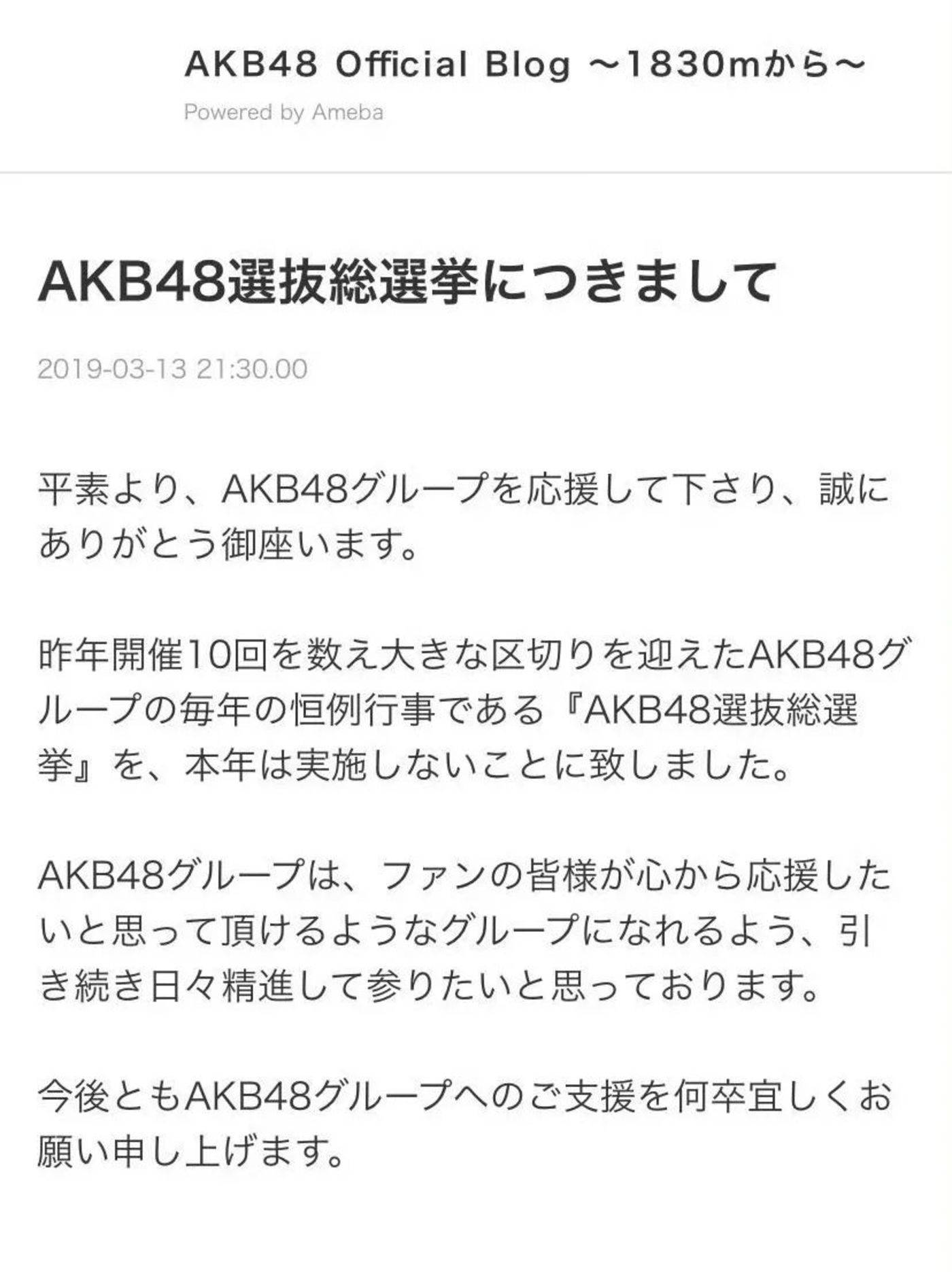 因此,不管是日本还是韩国,养成模式转型也早早提上了日程。比如同为公开养成的 AKB48,早在 2019 年便宣布取消总选举,如今单曲 C 位也多以运营、制作人秋元康进行选择。